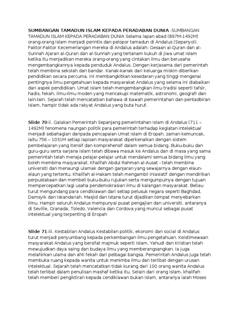 Memberikan sumbangan besar kepada dunia sehingga ke hari ini. Sumbangan tamadun islam kepada tamadun dunia selepas zaman renaissance pengenalan sumbangan islam terhadap tamadun manusia tidak dapat dinafikan lagi. Kehebatan umat islam dalam memikul amanah allah sebagai khalifah di muka bumi telah memberi sumbangan yang begitu besar. Sumbangan islam dalam tamadun india. Sisi lain keagungan peradaban islam.